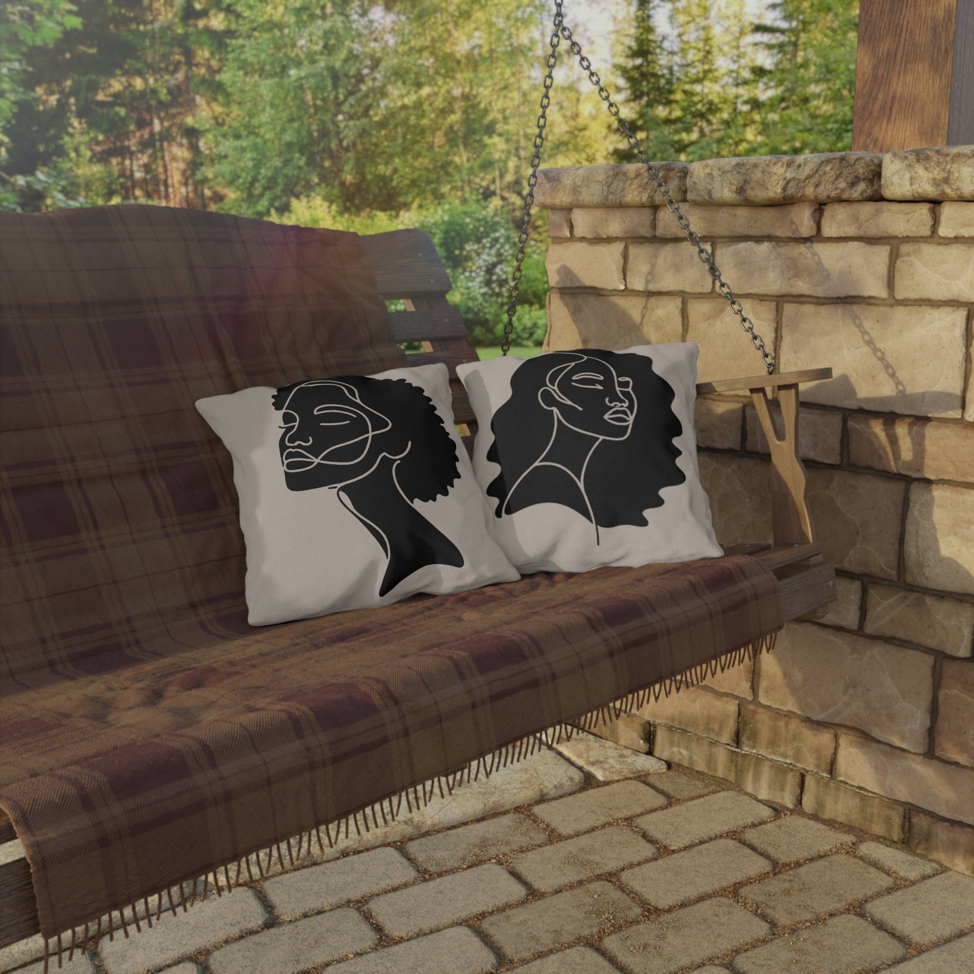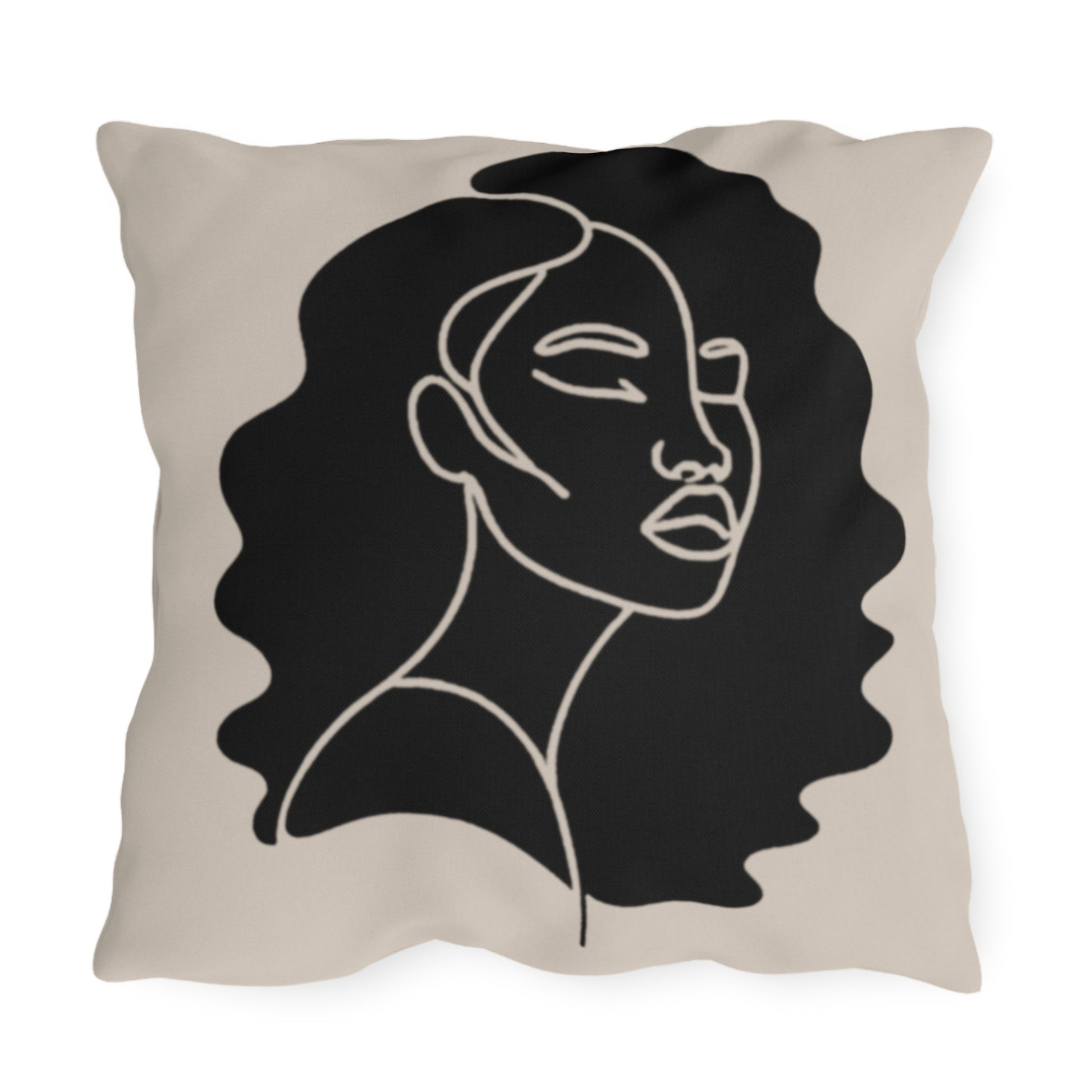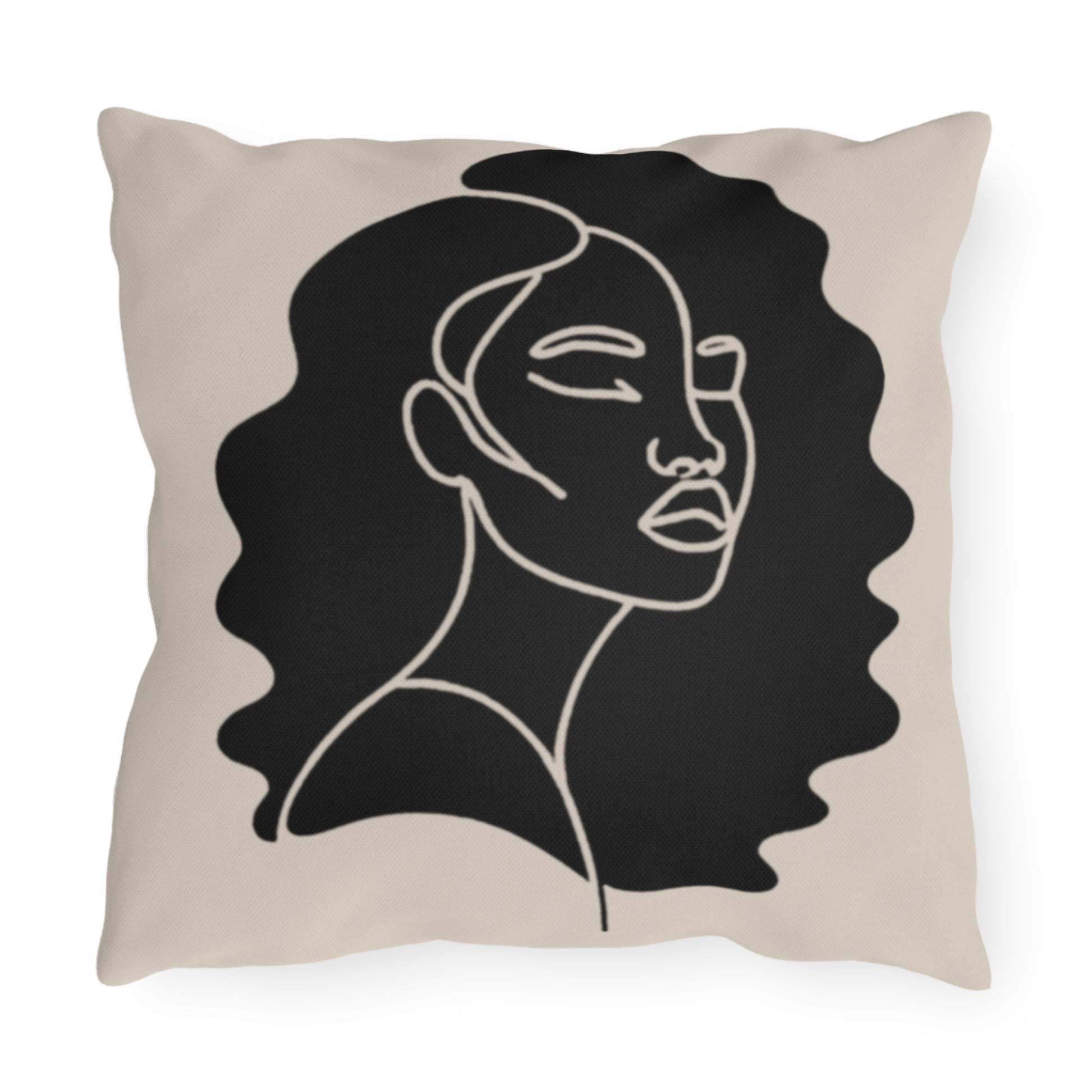 Rest upon this outdoor pillow featuring a silhouette of beauitful natural hair. This pillow is a luxurious addition to any patio or outdoor space inviting you to relax in the essence of nature. Crafted from durable, weather-resistant materials, this pillow not only adds an artistic touch to your outdoor lounging. Perfect for those who wish to infuse their outdoor space with modern elegance and a celebration of human grace.
